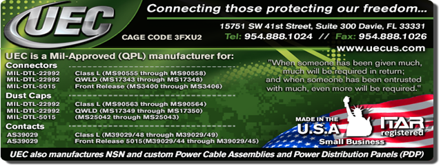 The UEC MIL-DTL-22992 QPL’d Class L heavy duty connectors are the largest size cylindricals, highly suitable for industrial or military applications, and designed to meet the demands of heavy power interconnections.